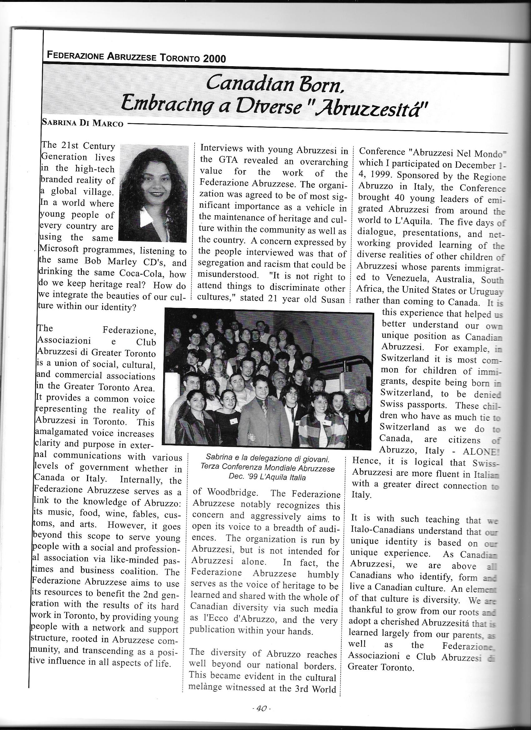 Click here for the article “Canadian Born, Embracing a Diverse Abruzzesità”